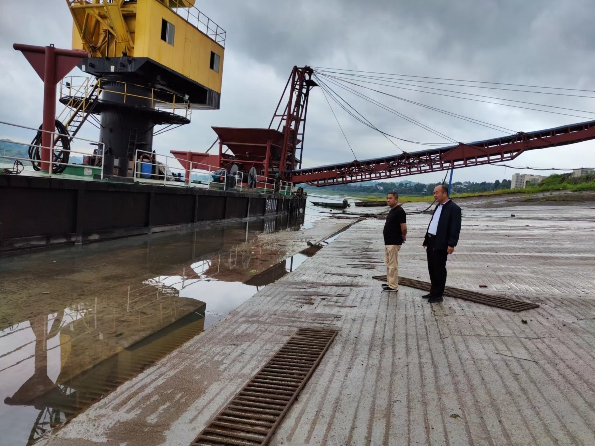 2022 年 5 月 9 日, 國瑞商貿(mào)總經(jīng)理羅桂林帶領(lǐng)公司職工 在榕山民用碼頭開展防汛減災(zāi)隱患排查工作。