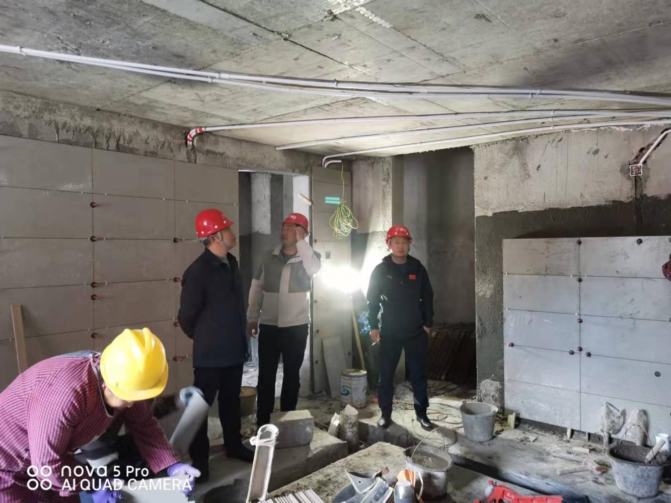 為進一步加強和落實項目安全生產(chǎn)工作, 近日董事長張 學(xué)彬帶隊檢查龍掛山裝飾裝修項目開展安全生產(chǎn)工作。 張董 一行重點排查模板、 腳手架、 施工用電、 高空作業(yè)、 受限空 間等環(huán)節(jié)存在的安全隱患, 落實防滑、 防火、 防坍塌、 防高 處墜落、防機械傷害等安全措施。