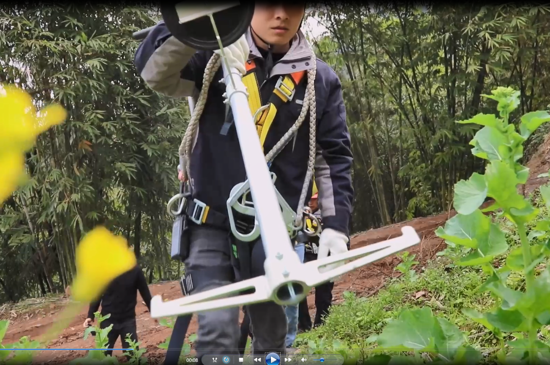 副 救 援 人 員 帶 繩 攀 登 支 架 , 到 達(dá) 支 架 頂 部 后 , 地 面 人 員 拉 緊 安 全 繩 將 救 護 T 型 架 拉 至 支 架 上 端 , 由 副 救 人 員 掛 在 運 載 索 上 。
