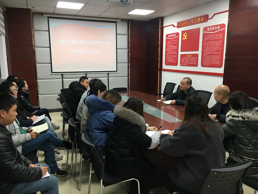 2019年12月31日,四川廣源達(dá)建設(shè)工程有限公司譙棣升董事長(zhǎng)主持召開(kāi)全體員工安全生產(chǎn)工作會(huì)。