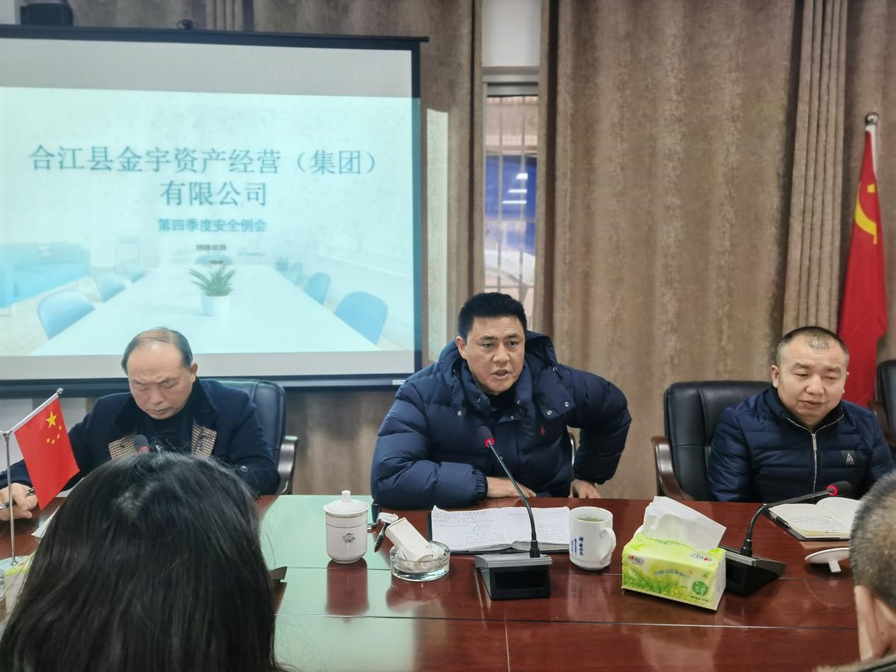 2020年12月23日合江縣金宇資產(chǎn)經(jīng)營(集團)有限公司召開了第四季度安全會議,會議主要圍繞公司年終安全生產(chǎn)進行了總結(jié),對2021年安全工作進行了安排部署。會議上董事長鞠志良強調(diào)國有資產(chǎn)在保值增值的同時,更要抓好國有資產(chǎn)的安全排查,確保資產(chǎn)安全。