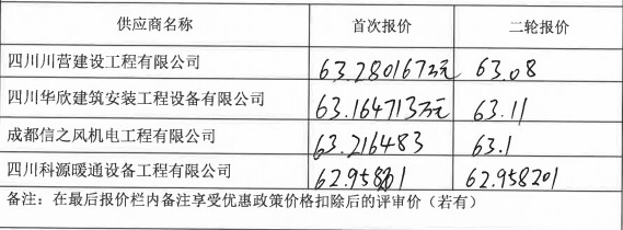 中選單位為:四川科源暖通設(shè)備工程有限公司,中選金額為:629582.01元。