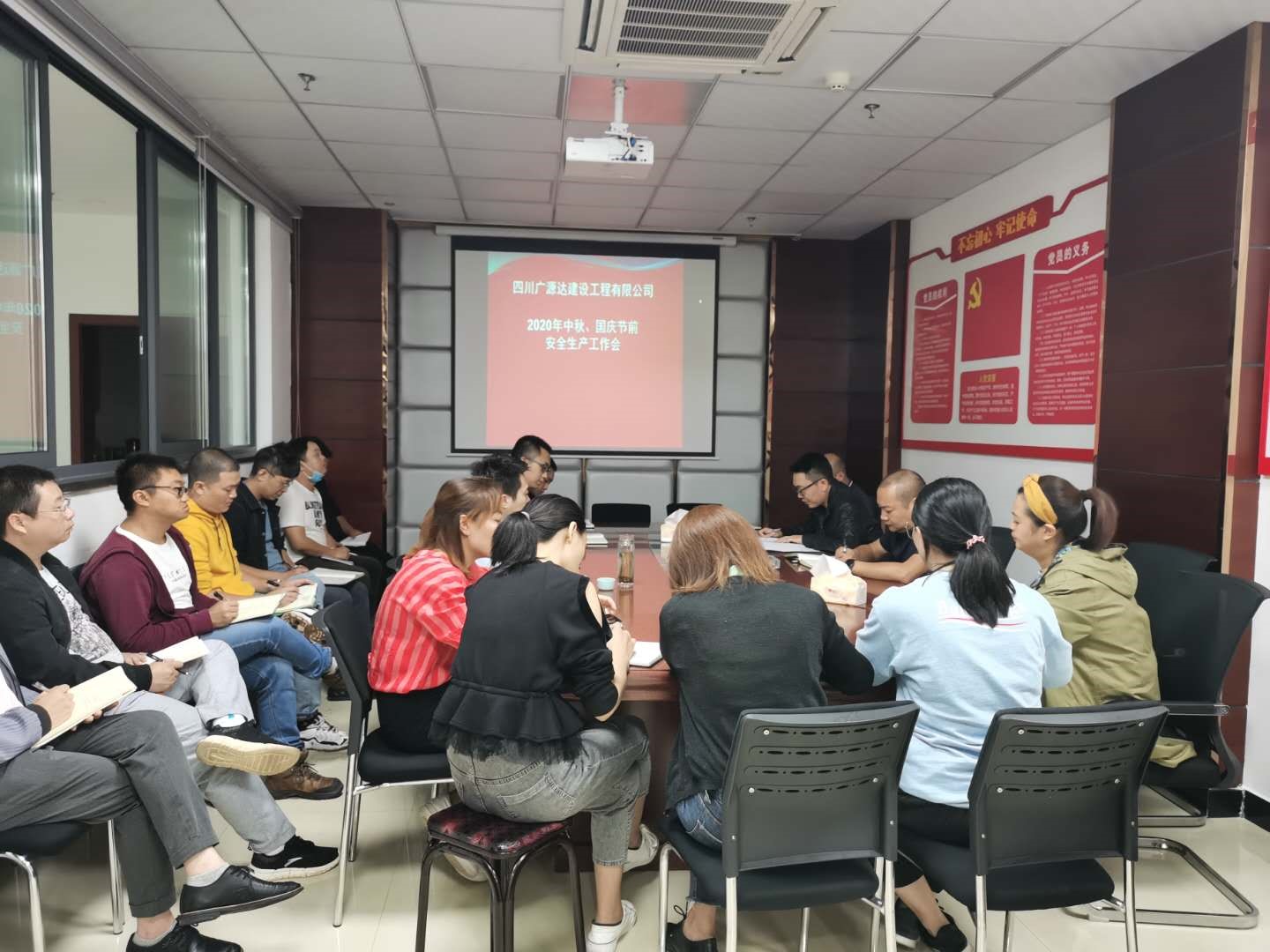 2020年9月25日,廣源達(dá)公司董事長譙棣升主持召開中秋國慶節(jié)前安全生產(chǎn)工作會暨《關(guān)于迅速集中整改國務(wù)院安委會考核巡查四川省2019年度安全生產(chǎn)和消防工作發(fā)現(xiàn)問題工作方案》的整改會,公司全體人員及各在建項目項目經(jīng)理和安全負(fù)責(zé)人參會。