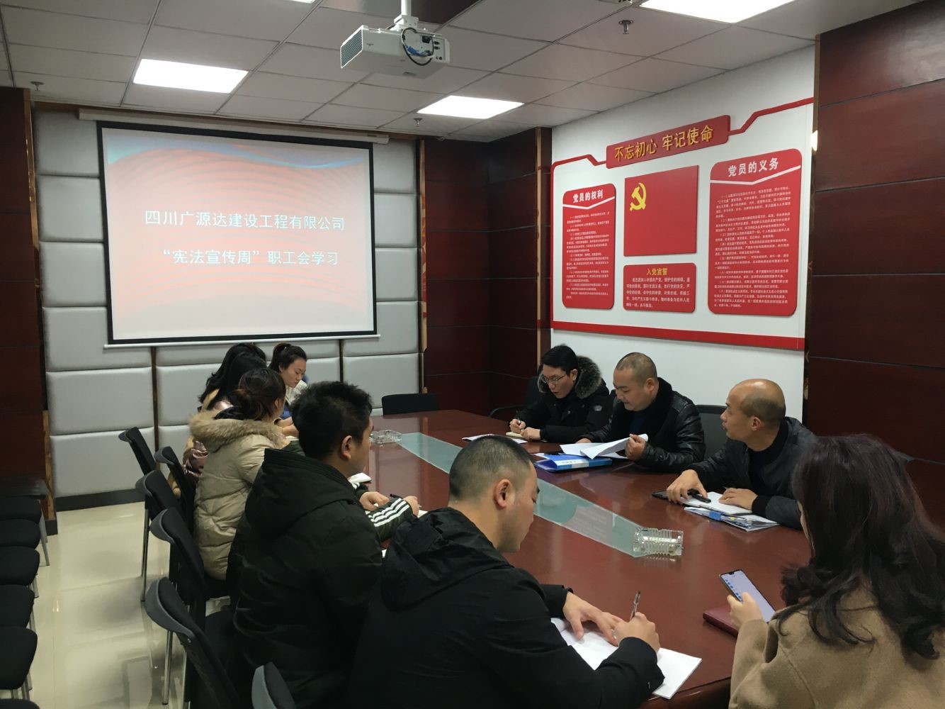 2019年11月3日,四川廣源達(dá)建設(shè)工程有限公司譙棣升董事長(zhǎng)主持召開(kāi)“憲法宣傳周”職工學(xué)習(xí)會(huì)議,公司全體職工參加。