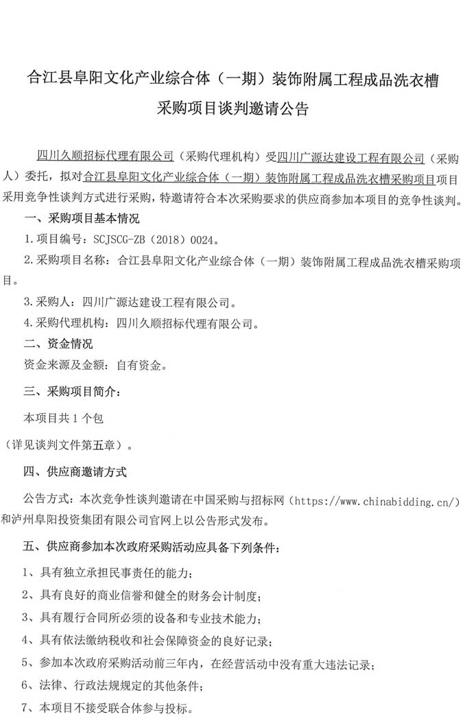 合江縣阜陽文化產業(yè)綜合體(一期)裝飾附屬工程成品洗衣槽 采購項目談判邀請公告.doc