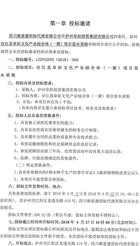 投標(biāo)邀請:合江縣阜陽文化產(chǎn)業(yè)綜合體(一期)項目苗木采購