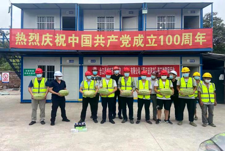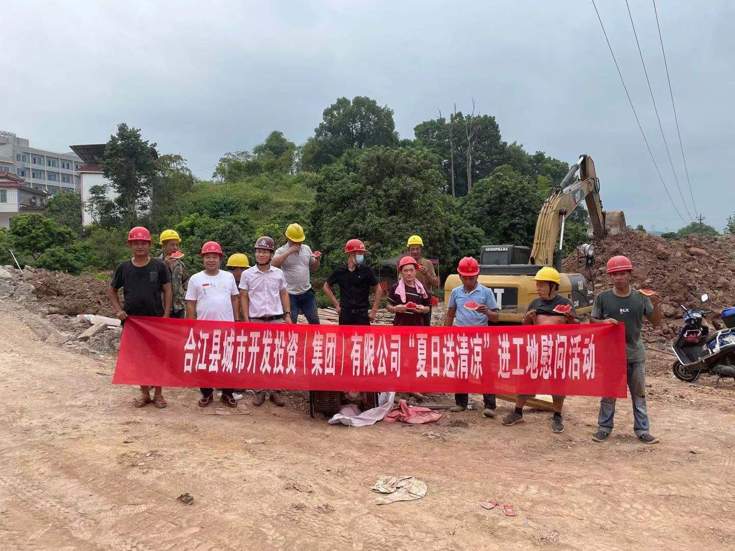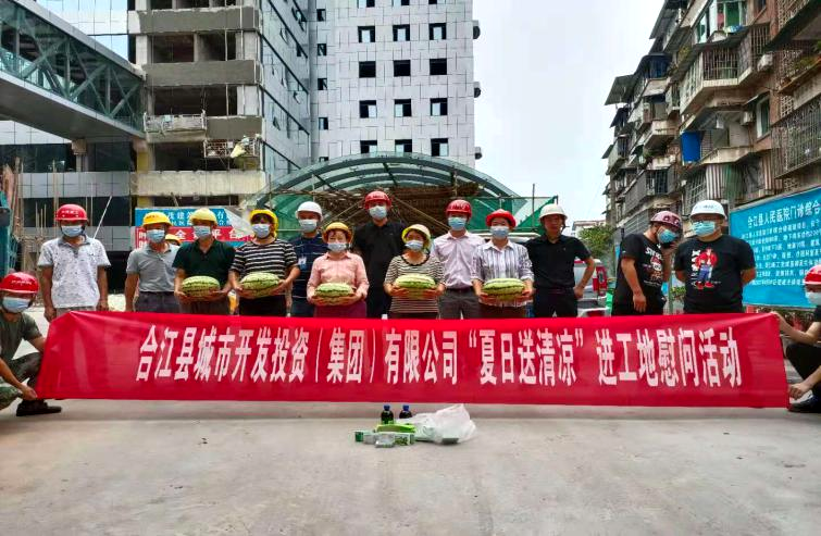 炎炎酷暑,天氣持續(xù)高溫,為切實做好戶外一線職工防暑降溫工作,2021年8月7日,合江縣城市開發(fā)投資(集團)有限公司開展“夏送清涼暖人心凝心聚力鼓干勁”活動,合江縣城市開發(fā)投資(集團)有限公司董事長兼總經(jīng)理鞠志良、副總經(jīng)理陳磊、工程部部長陳云峰等領(lǐng)導為高溫下堅守我司建筑崗位等戶外一線職工送去夏日清涼,送去公司的關(guān)懷。