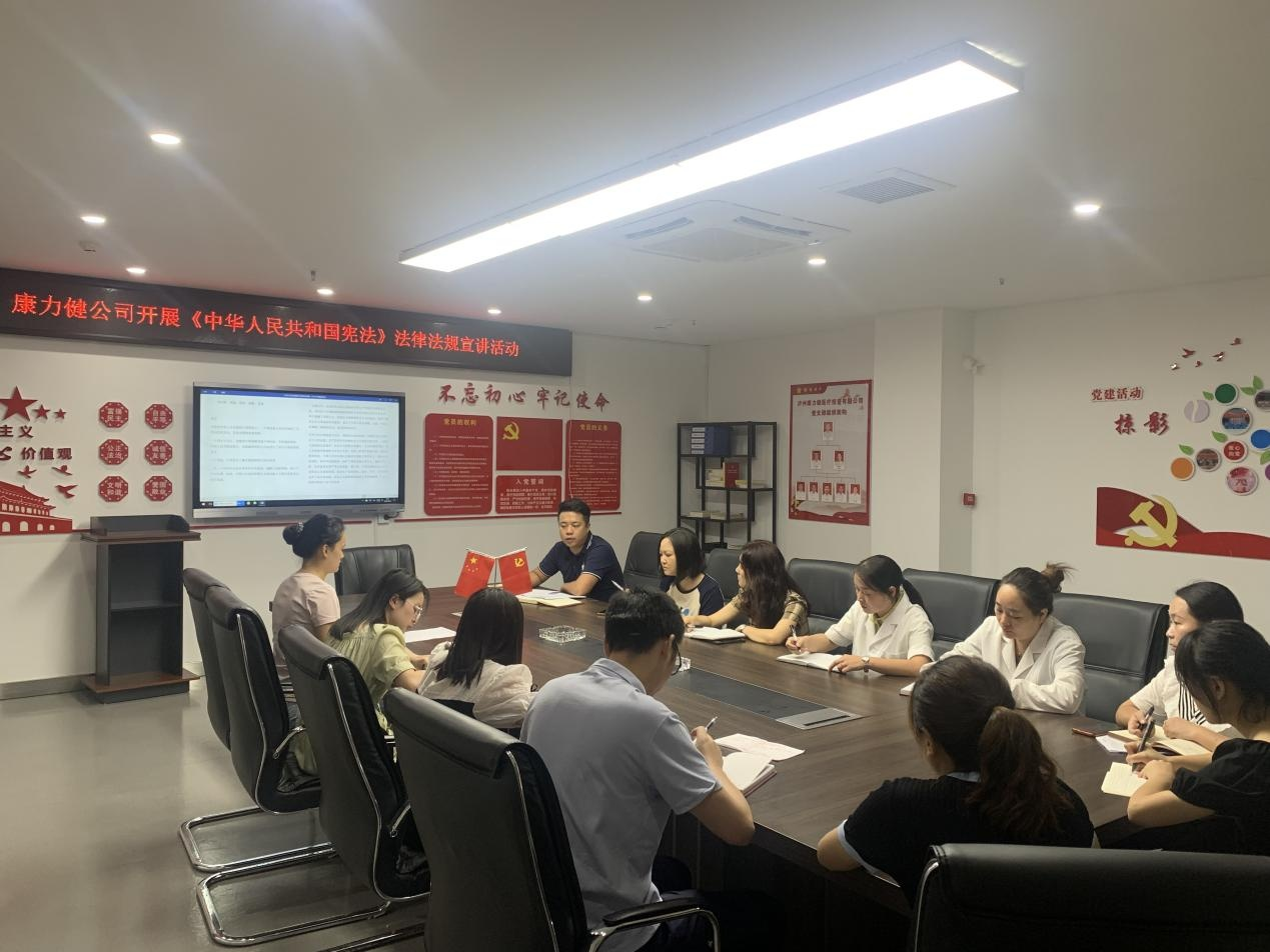 2022 年 8 月 23 日 , 康力健公司組織開展 《 中 華 人 民 共 和國憲法》 法律法規(guī)宣講活動(dòng), 由康力健綜合部部長賀佳領(lǐng)學(xué)。