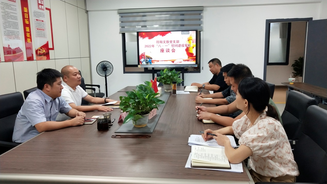 為扎實做好擁軍優(yōu)屬 、 擁政愛民工作 , 在 “ 八 一 ” 建軍節(jié)來臨之際, 符陽文旅黨支部開展 “ 八一 ” 慰問活動, 組織文旅 公司工作的退役軍人召開座談會, 了解他們的工作和生活情 況, 為他們送上慰問金, 并致以節(jié)日的祝福。 退役軍人表示 感受到公司的關(guān)懷和愛心,在今后的工作中發(fā)揮軍人本色, 為公司發(fā)展貢獻(xiàn)力量。